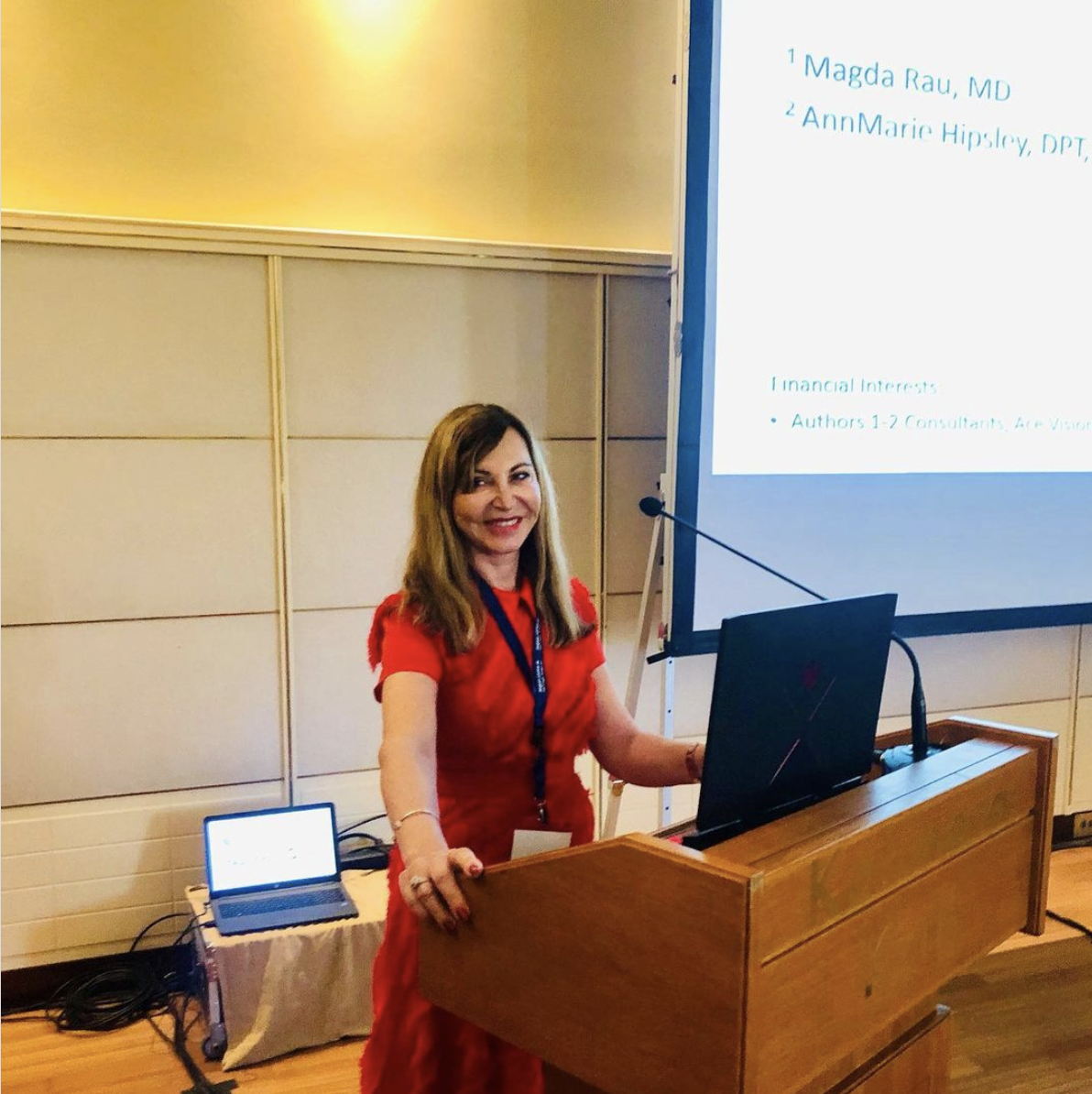 Dr. Magda Rau, eine der wichtigsten Frauen in der Augenheilkunde. Sie stellt die Implantation einer permanenten Kontaktlinse vor.